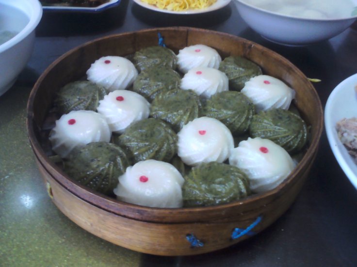The best green ball dumplings are made of Aicao, it is a special plant which is wildly used in China as a type of traditional herb medicine. So it is more expensive than maiqing, cost wise and people believe it is better in taste.