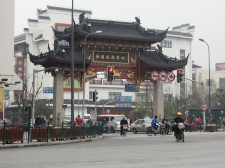 Janny Chyn was our local walking tour guide for the day.  She gave us a good overview of the city in several different areas.  We went first to Yu Garden.  Here is a gate as we came near (but not yet to) Yu Garden: