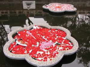 This is at the entry to Yu Garden, these flowers floating on the water: