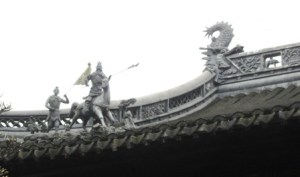 This is on the top of one of the buildings, note the warriors and the dragon: