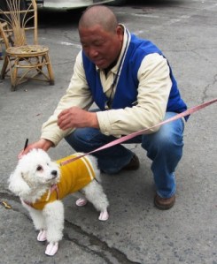 Lots of the dogs we saw in Shanghai were dressed in a variety of outfits.  I like how this one had both a top and pants: