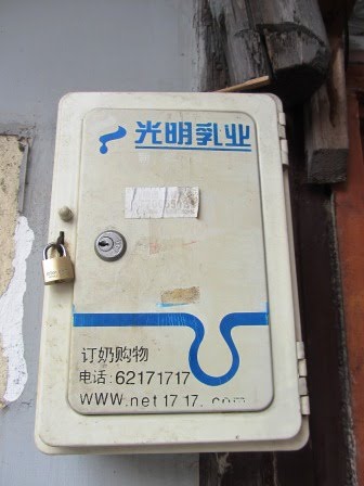 We guessed cable box, Internet connection, phone connection, electrical box, all wrong.  It is a milk delivery container.  One key for the milkman to open it, another key for the local owner.