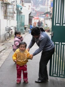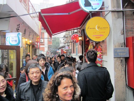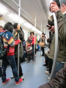 We rode a subway over to the French Concession.  When we first got on, we were squished in like sardines.  But then we switched to another subway after a few stops and it wasn’t as crowded.  Note the girl and the little boy in this pic working the crowd for money (the girl is singing, the little boy is begging):