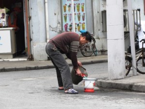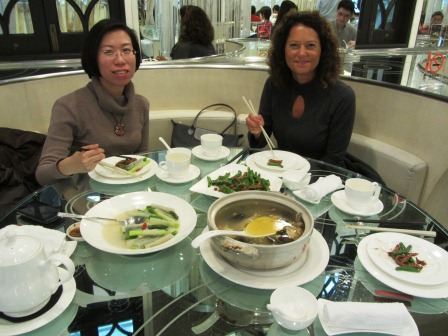 Shanghai food uses more soy sauce, is sweeter and uses more oil than typical Chinese food.  We had chicken soup, beef tenderloin wok style with peppers, asparagus and Shanghai style fried rice.  It was the highlight of the day for Krissie (mine was cricket wrestling and marriage market, coming up soon).  The lunch was wonderful, the dessert (sticky rice) was awful—yuck!