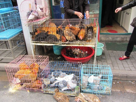 And selling live chickens  If you look closely, you will see the remains of chickens in the red tub below: