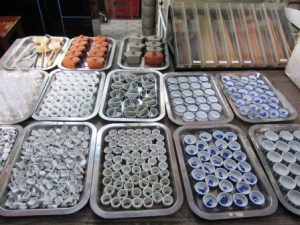 Then we went to the cricket and bird market.  Outside they were selling cans for storing your cricket, small ones for normal crickets and large ones for fighter crickets: