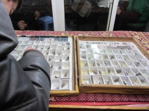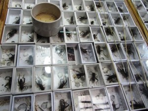 He would take out a cricket and put it into this small container, then tickle it with one of the brushes you see on the right.  If the cricket showed its teeth (I didn’t know that a cricket has teeth?), that is a good sign that it will be a good fighter.