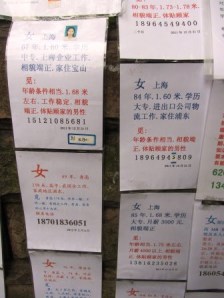 Parents come to the Marriage Market to make matches for their children.  It’s more than just a few parents coming together to try to matchmake their kids, they are very organized about it, including putting up personal ads about each guy or girl: